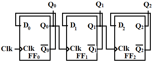 Consider a 3-bit counter with Q0, Q1, Q2 as the output of Flip-flops FF0, FF1, FF2 respectively. The state table for the 3-bit counter is given below: