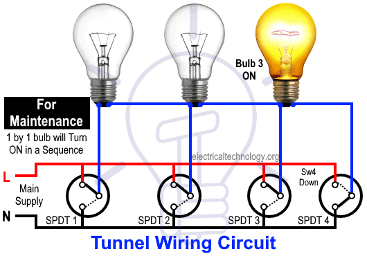 Tunnel Wiring Circuit Diagram for Light Control using Switches