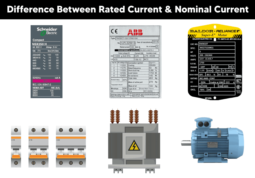 To make things simple and easy to understand, even for a layperson, let’s look at how nominal current and rated current are applied in motors, transformers, circuit breakers, and other electrical devices.
