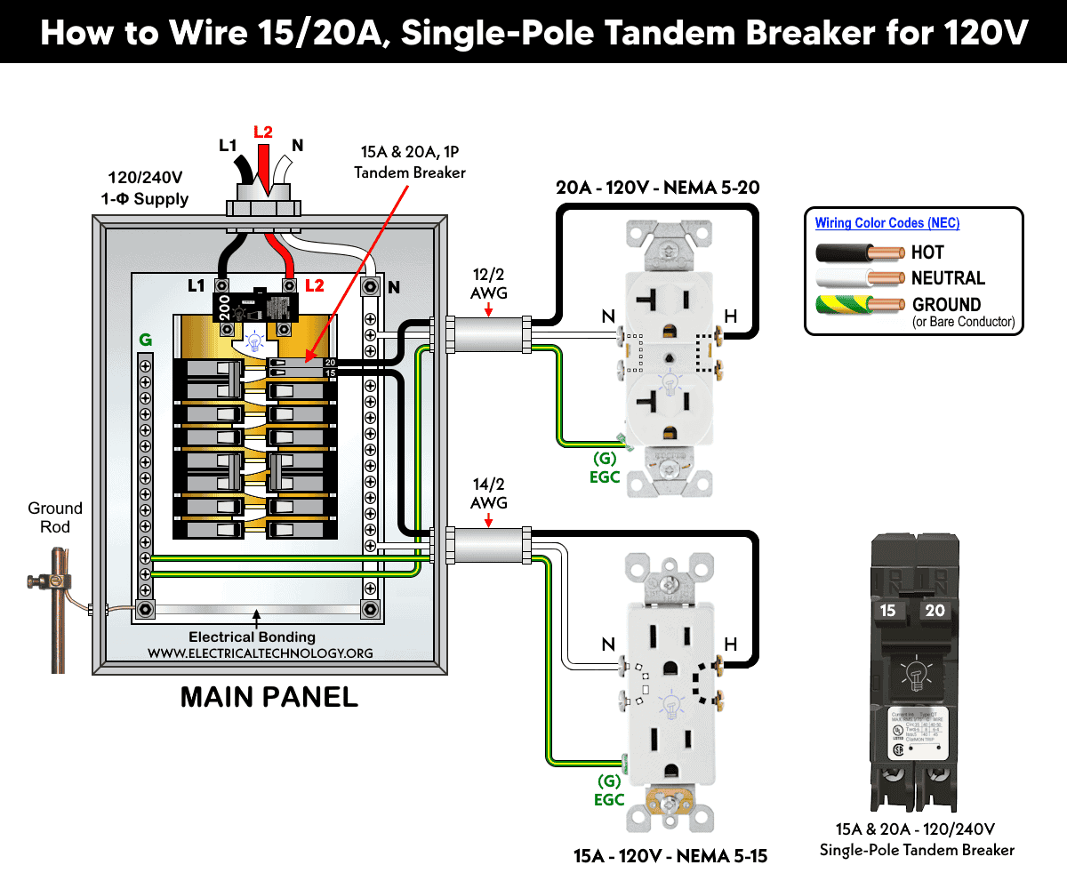 How to Install a 15/20A Single-Pole, Two Pole and Quad Tandem Breakers for 120/240V