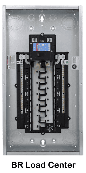 A BR panel is Eaton’s standard residential load center, designed for affordability and ease of installation. BR panels typically use aluminum bus bars and accept 1-inch BR breakers.