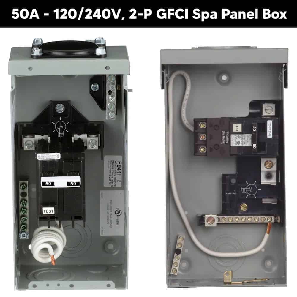 - In the spa panel the GFCI is wired downstream the standard breaker. The standard 2-pole 50A – 240V breaker can be used as maintenance disconnect, while the 2-pole 50A – 240V GFCI breaker can be used as emergency disconnect.