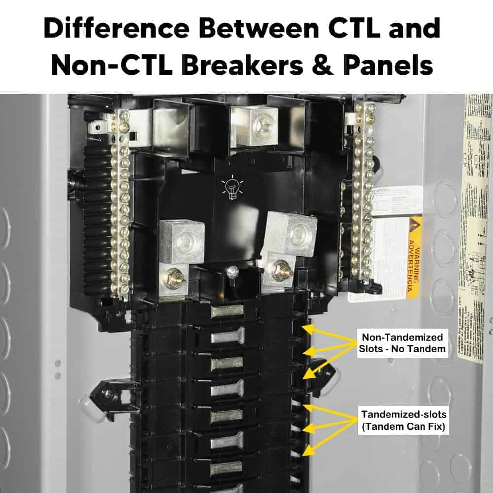 A Non-CTL panel does not have circuit-limiting rejection features i.e. breaker slots do not restrict installing tandem breakers. In other words, more breakers can physically fit than the panel was originally designed for.