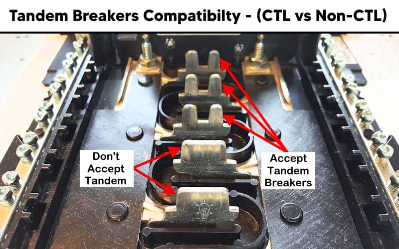 Similarly, look inside the panel at the breaker slot where the breaker attaches to the bus stab. In CTL panels, some slots have rejection grooves or physical barriers. It means, tandem breakers only fit in specific spaces.