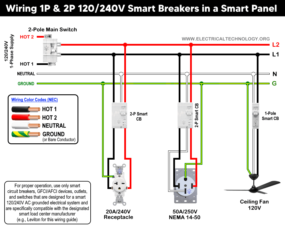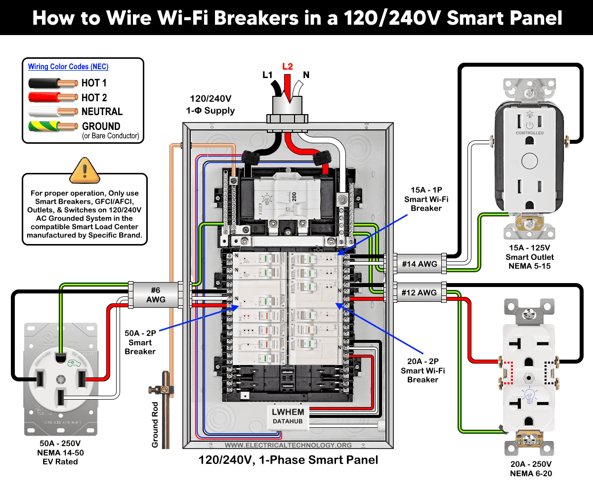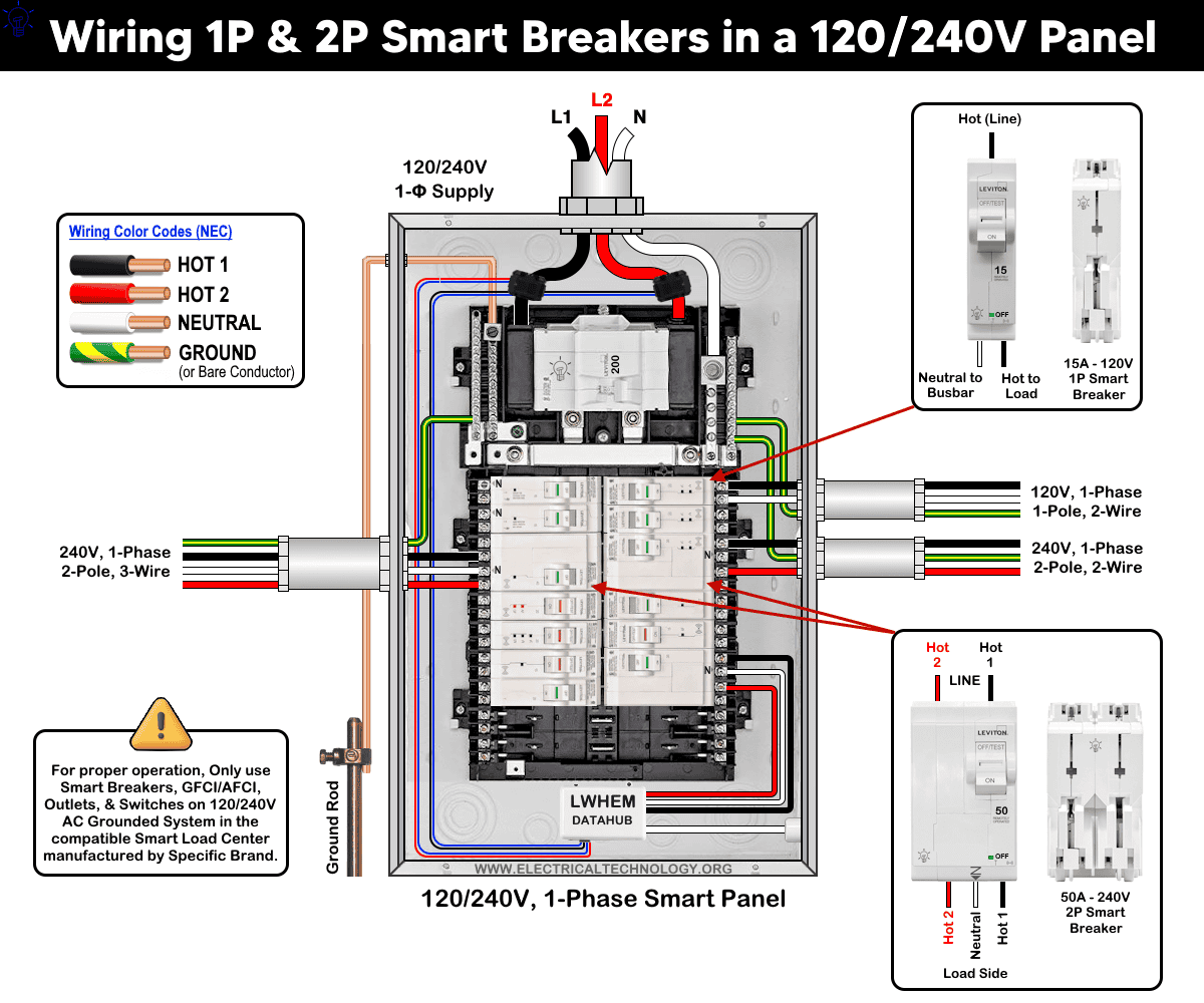 Wiring Installation of 120/240V, 1-Phase Smart Breakers in a Smart Electric Panel