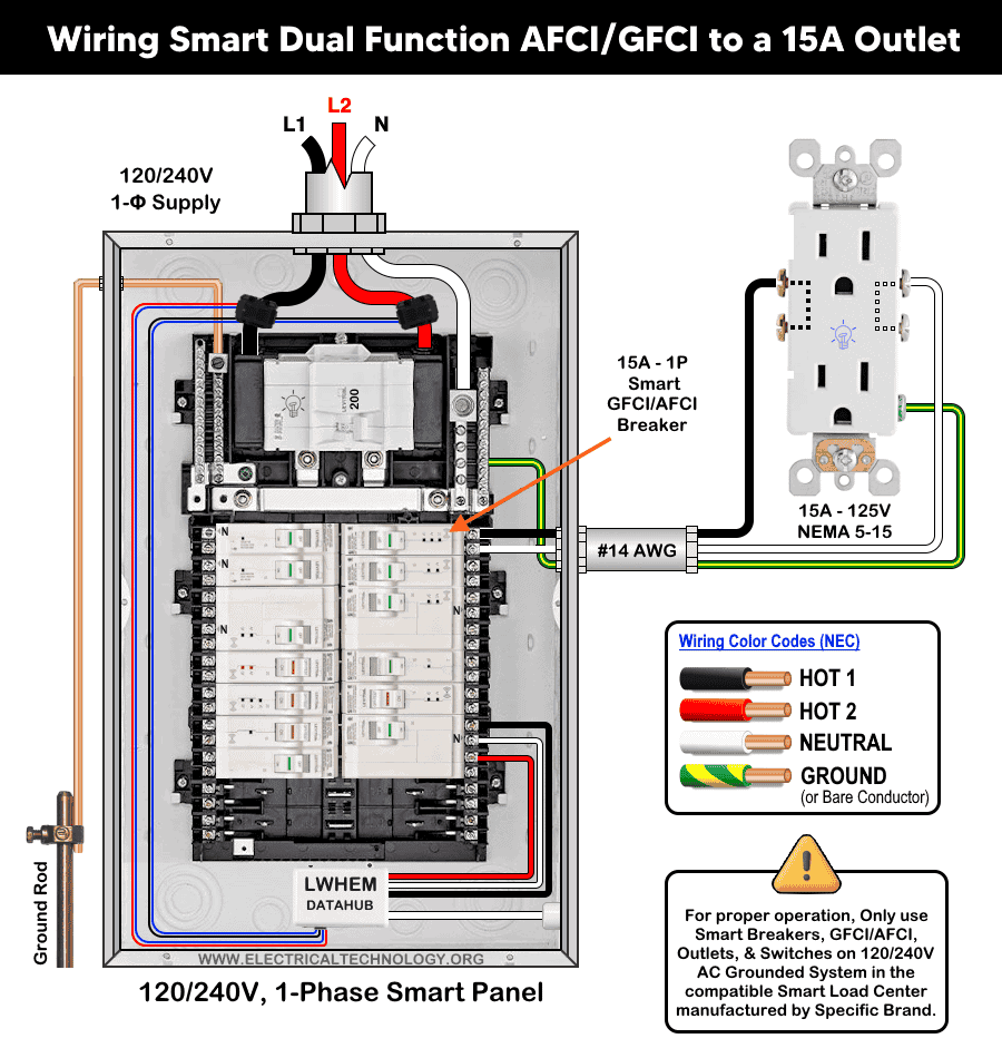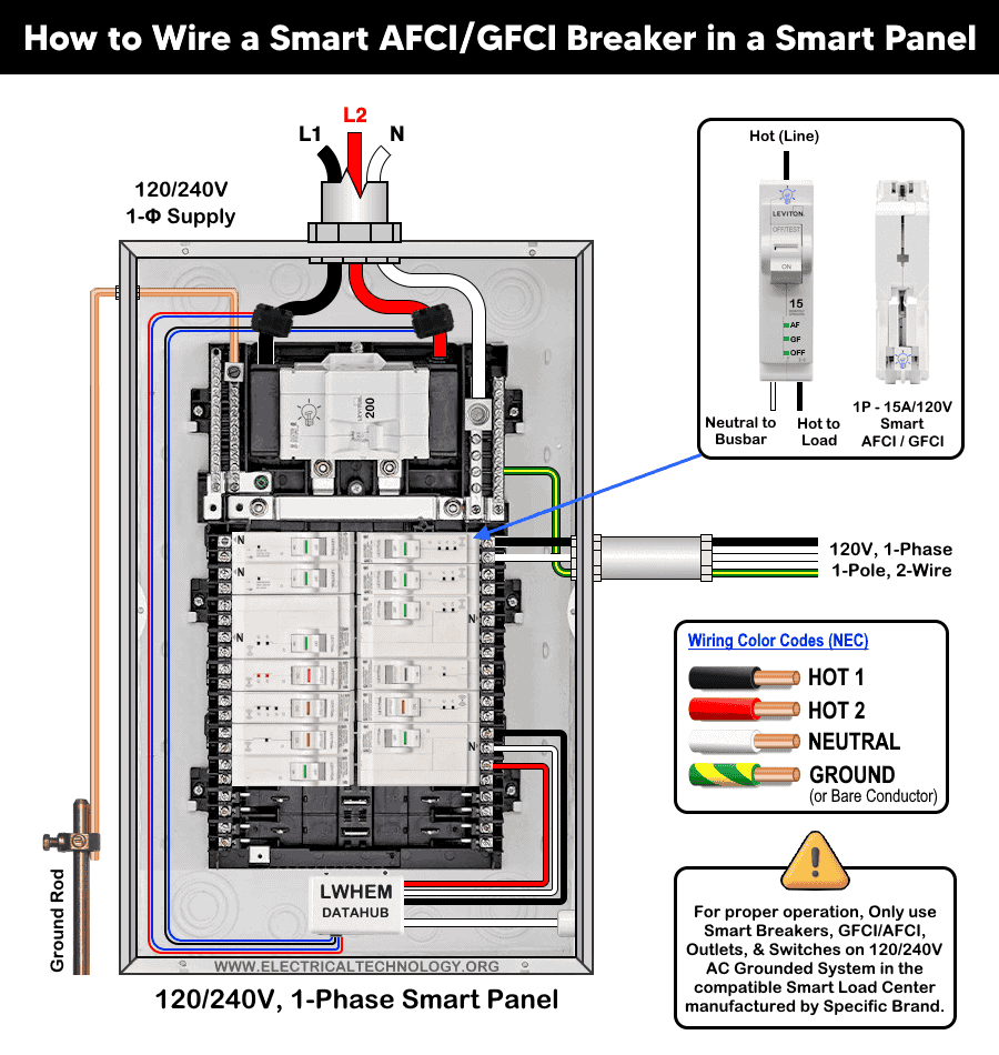 How to Wire Combination of Smart AFCI/GFCI Breakers in a 120/240V Smart Electric Panel