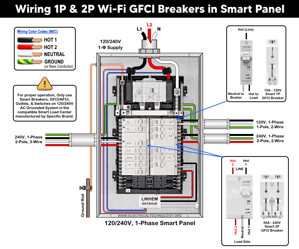 How to Wire 1-Pole & 2-Pole Smart GFCI Breakers in a 120/240V Smart Load Center
